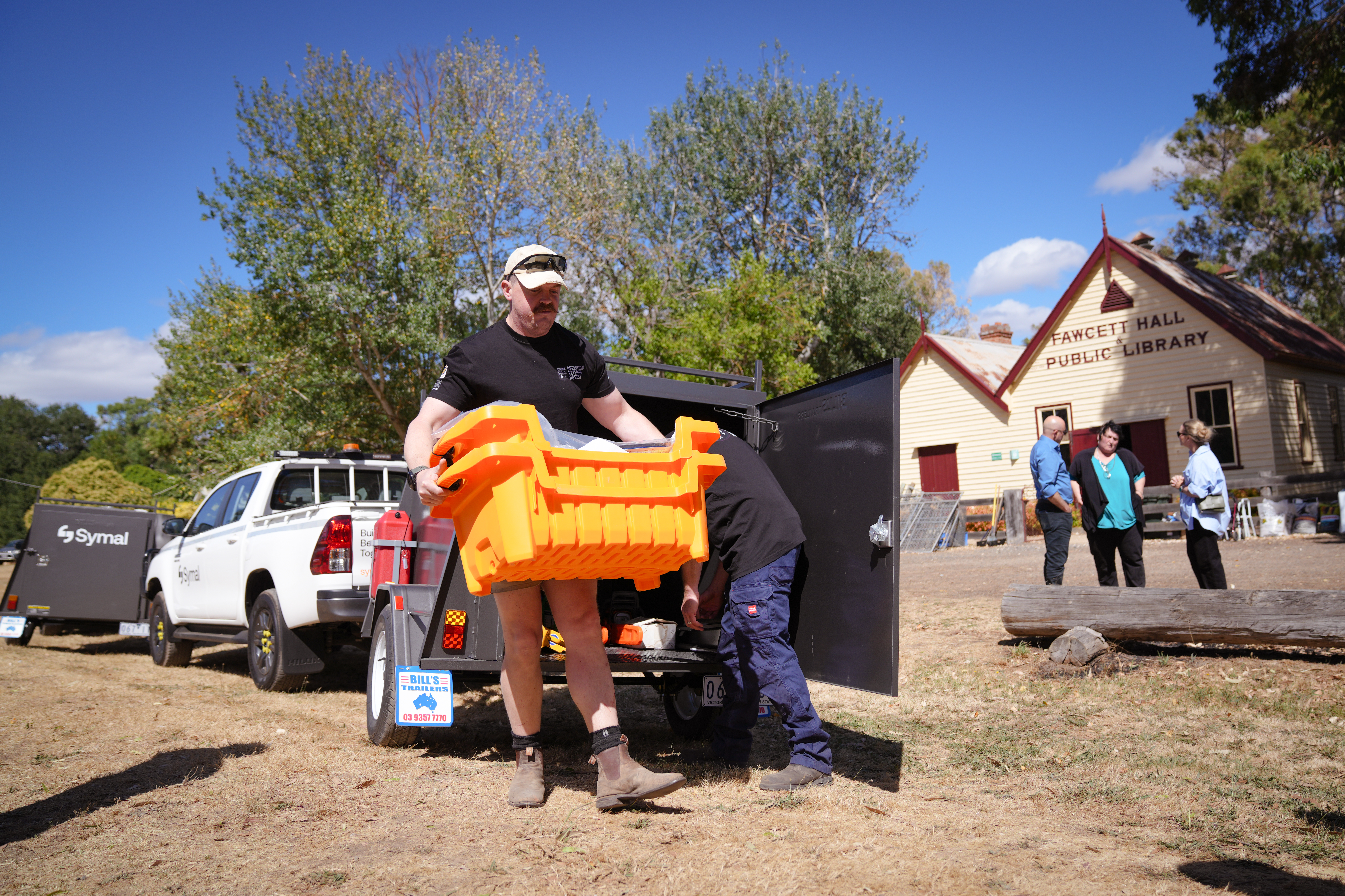 Symal CEO Nabeel Sadaka (pictured bottom left) and Christian George (pictured bottom right), National Lead - Defence and Emergency Management, joined veterans and RSL leaders to hand over two trailers in support of recovery efforts.