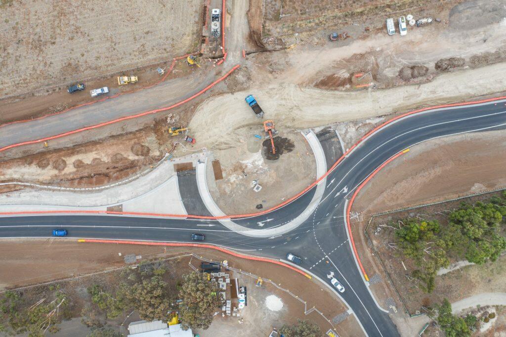 Stage one of road improvement works along Geelong Bacchus Marsh Road involved the construction of a new roundabout at Elcho Road, Lara, part of a $49.5 million safety upgrade between Lara and Balliang East.