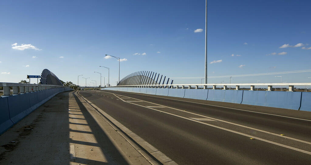 Civil construction works included earthworks, reinforced earth walls, structural concrete, drainage, pavements, lighting, signals signage, asphalt, line marking, and guard rail and safety improvements.