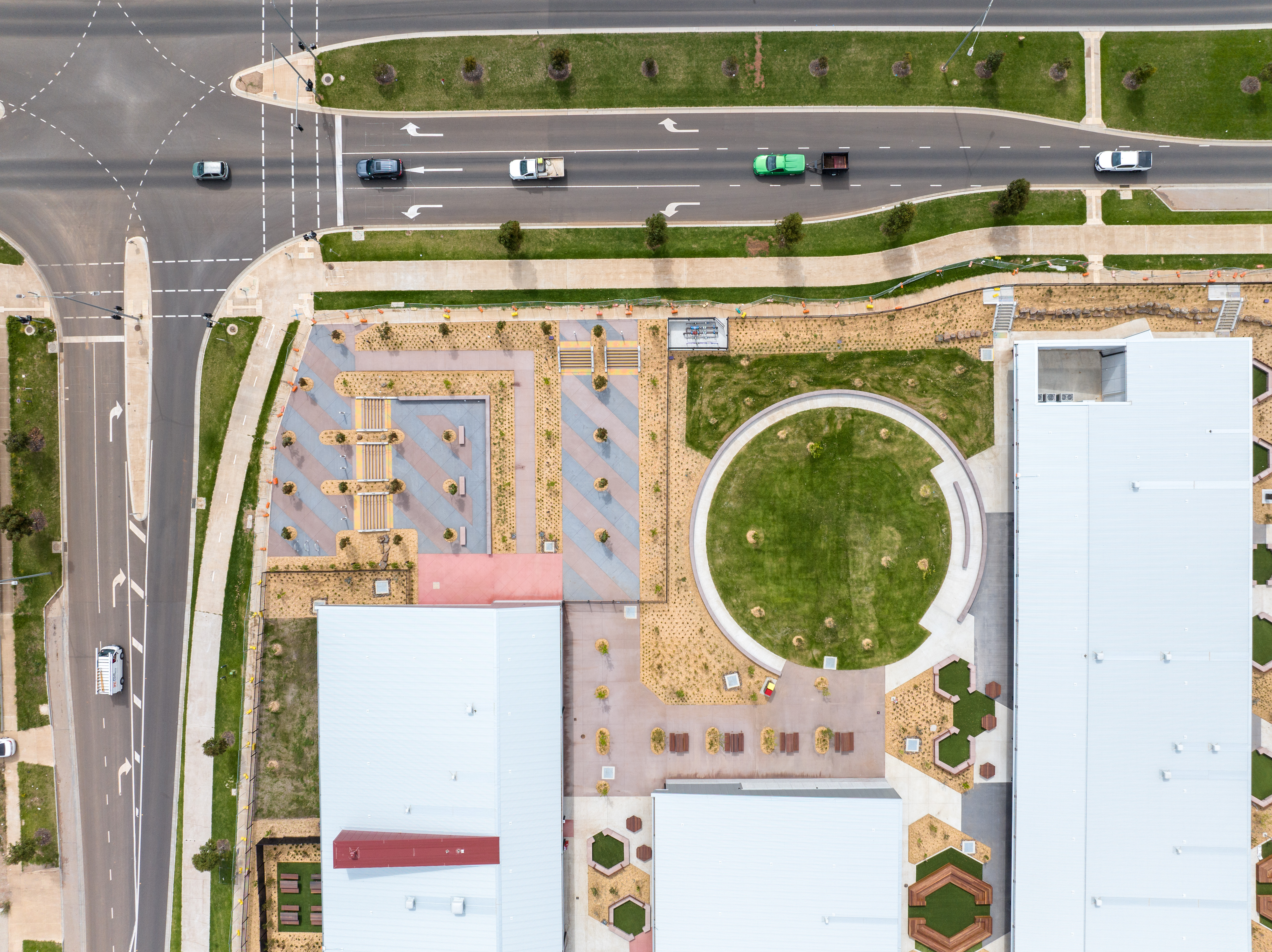 The use of feature landscaping elements such as curved in-situ colour concrete seating, decorative pathways and feature retaining walls is testament to our team’s agility and capability as a self-performing contractor.